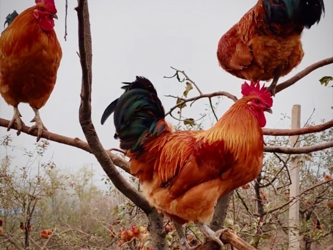 刚到农场,阿宏就带着我们去后院捉鸡。他家的鸡,跟野生的鸡差别不大,但很特别。白天,它们去玉米地里捉虫子吃。到了晚上,它们并不睡在地上,而是睡在树上。这棵树在农家院的后墙边,每到天黑,鸡们就会结伴上树。上树的过程颇为曲折,先飞至一株矮树枝头,再飞上后院墙,然后张开翅膀摇摇晃晃走过一段院墙,来到大树前纵身一跃,才能回到它们的住所。