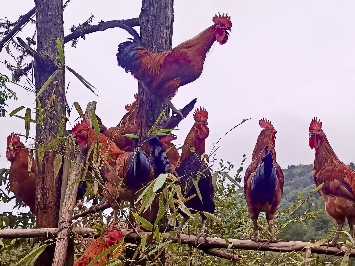 我很纳闷,这些鸡为何不住地面的窝棚,反而费尽周折睡在树上。阿宏告诉我,这是鸡的特性,或者说是野性。毕竟鸡是从野外驯化而来,他们家养鸡不像养鸡场那种圈养,而是散养、放养,所以鸡恢复了野性。这样养的鸡一年长不了多少肉,但肉质紧致鲜美。以前虽然不常吃鸡,但也没刻意关注过这些,听他这么一说,我的食欲顿时被勾起。不过,想吃鸡得先捉到鸡。