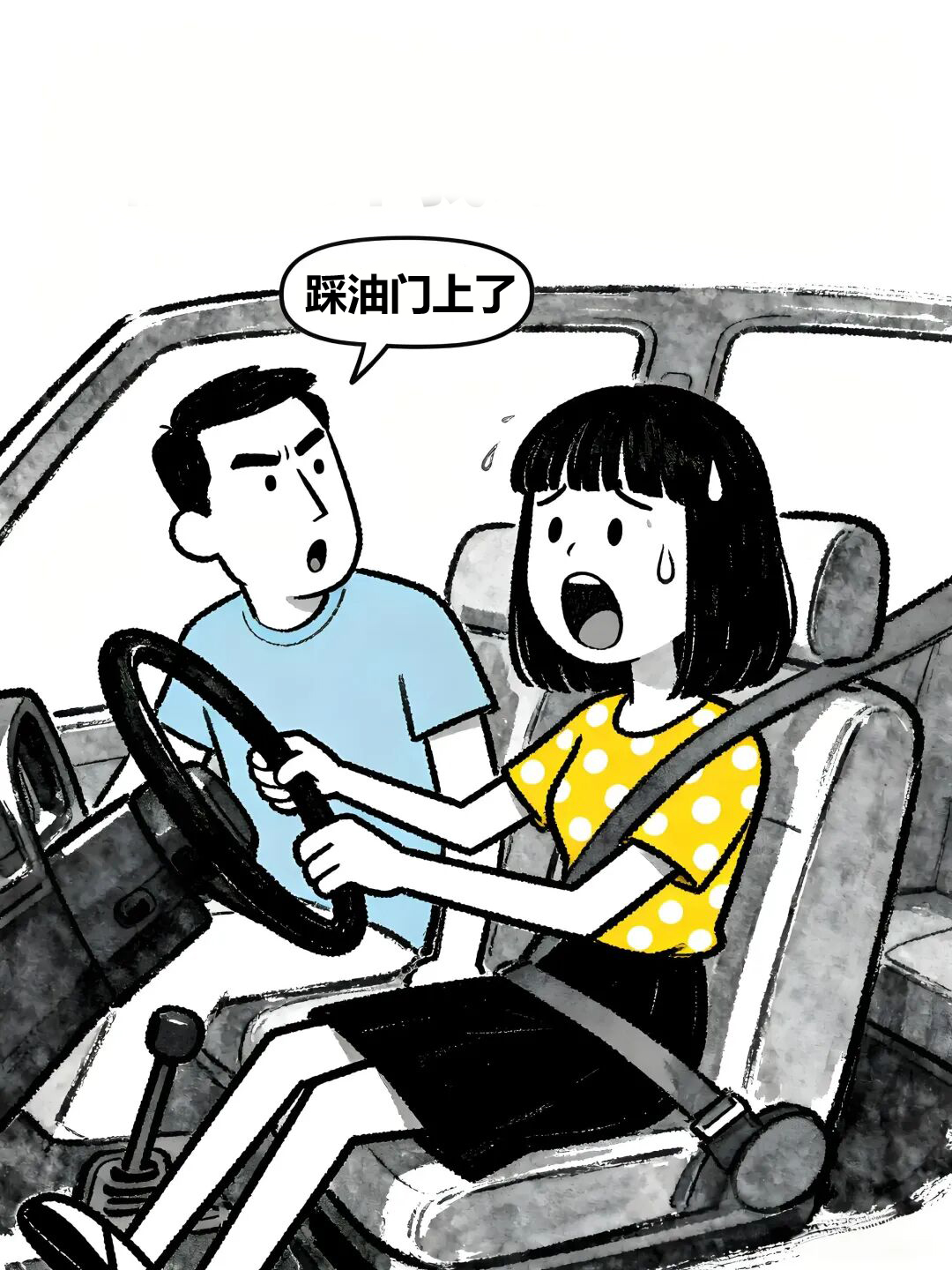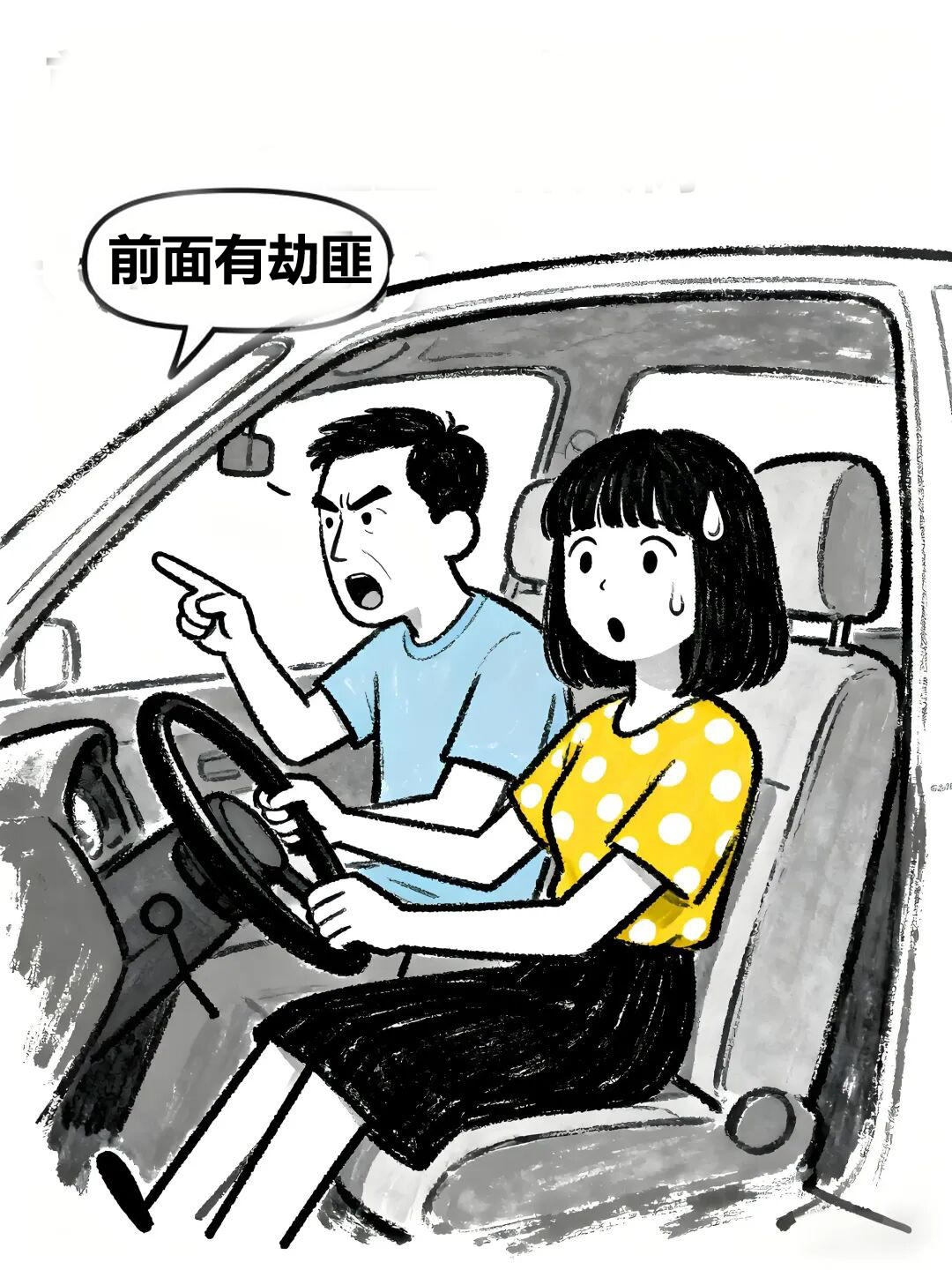 这时,车门打开了,一个年轻女子哆哆嗦嗦地下了车。警察赞许地看着眼前这位见义勇为的女子,冲她竖起大拇指:“女士,谢谢你帮助我们,才能抓住劫匪。不过……”,警察话锋一转说,“你这样做也太危险了,幸亏劫匪拿的是把玩具手枪。”姑娘惊魂未定,不住地拍着胸口,待情绪稍稍平复,才红着脸,颤声说道:“对不起,警察同志,我……我把刹车当油门了!”,警察满脸惊愕“啊!……”。