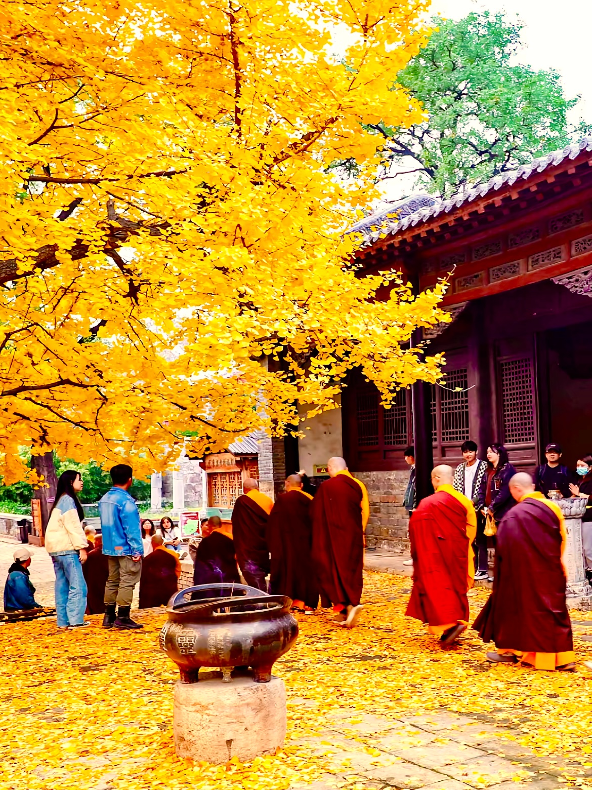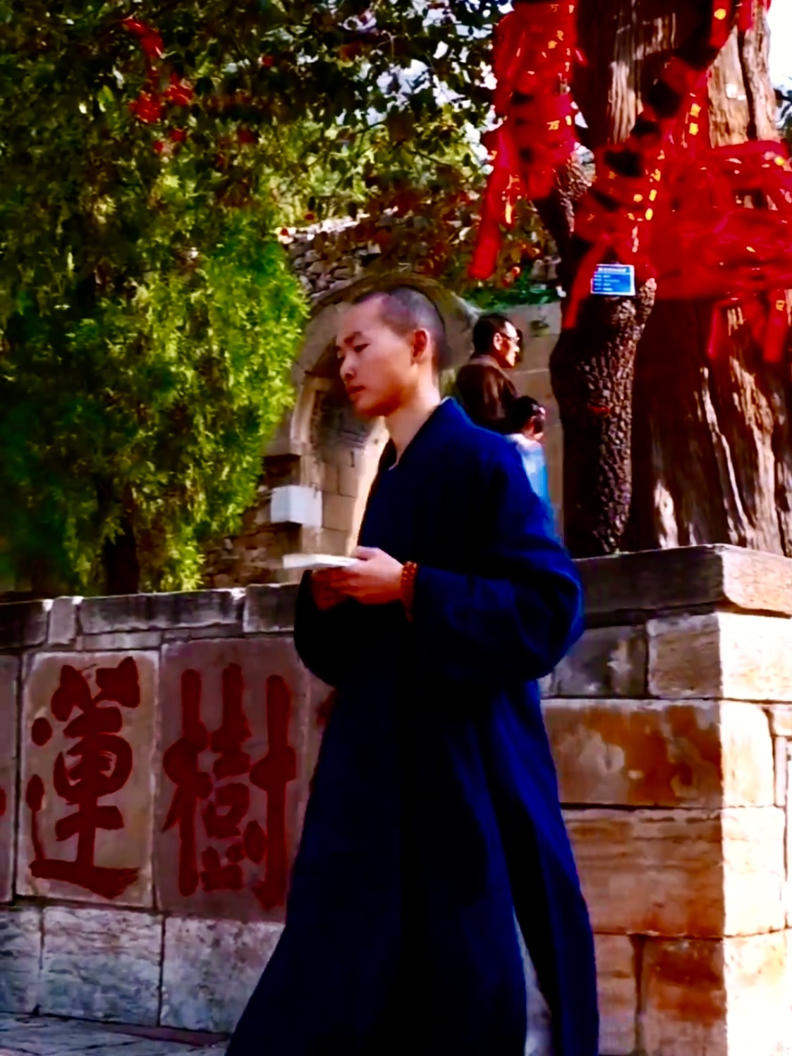 玄烨著书于此,静心修禅。高宗多次来此,修身养心。此刻,适逢诸多行脚僧,不念枝头零落的昨日繁花,不畏云深不知处的明日寒霜,不困于如秋水般流转的情愫,不乱于似风扫残荷的心绪。在此打坐冥想。应无所住,而生其心,即便行至秋水穷尽、舟楫搁浅之处,亦能安然趺坐于覆满霜痕的磐石,静观天际孤云舒卷、自在升腾。