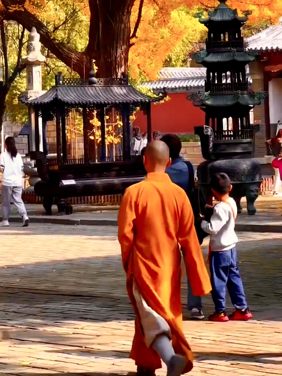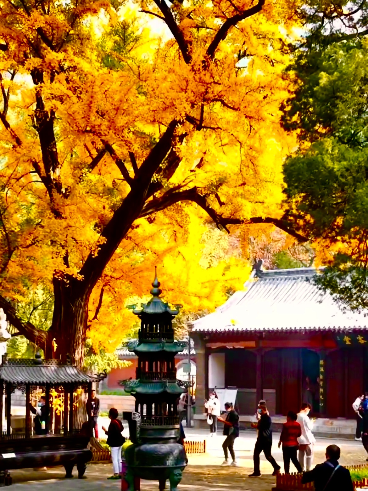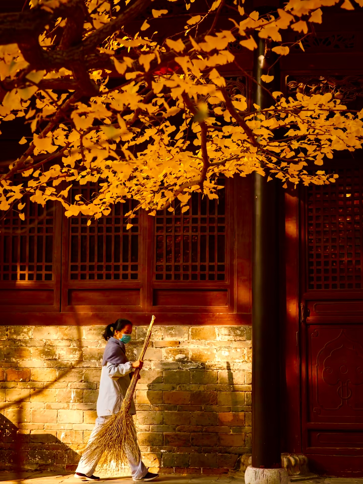 灵岩寺,始建东晋,距今千余有馀,四大名刹居首。踏过红枫灼灼、银杏鎏金的斑斓小径,行经木叶萧萧、寒潭凝碧的清寂森林,抬眼望去,辟支塔直矗于天,八角九层砖塔,像支锥笔插于山峦之间,塔基刻有古印度阿育王皈依佛门之事。缓步寺内,静谧清幽,高大的银杏树庄严雄伟,多有修行者,跋涉悲欢交织之山河,于霜染晨曦,雁唳长空之日,抵达此寺,他们以善为露,以诚为灯,以爱为舟,安然摆渡于这婆娑世界的秋水之上。