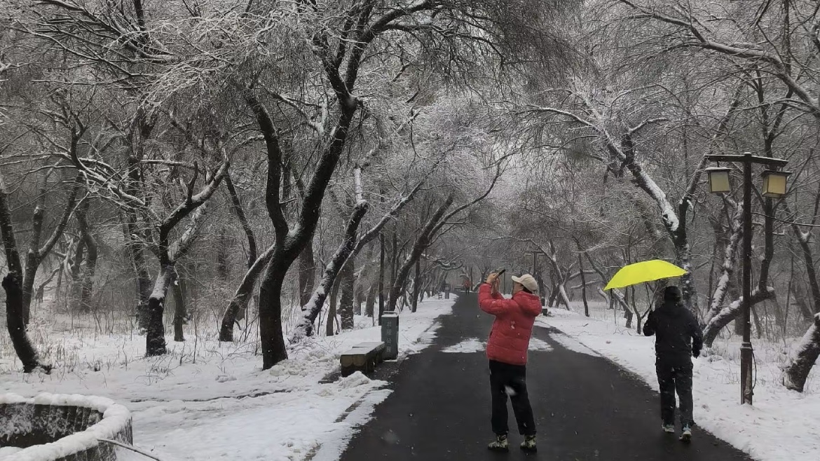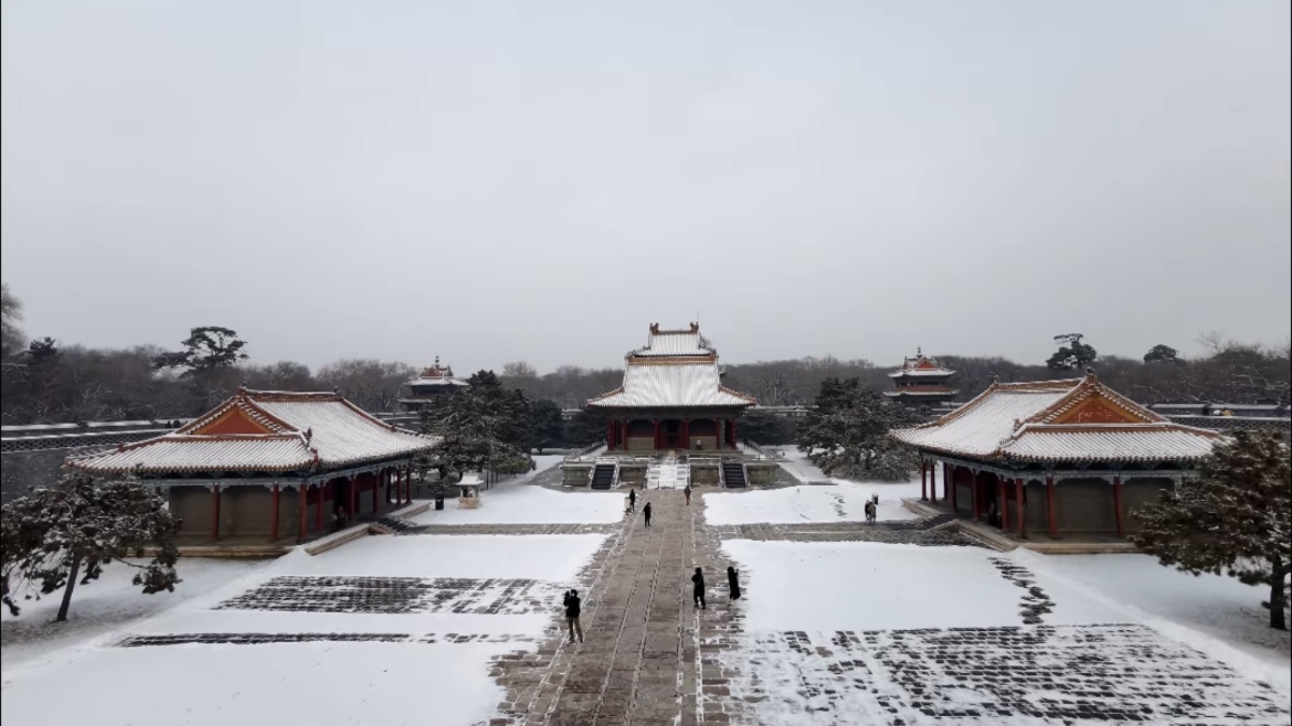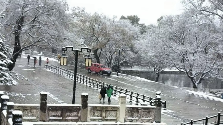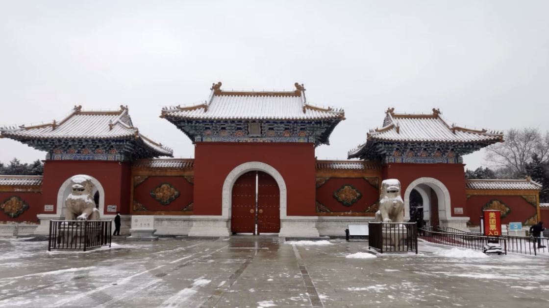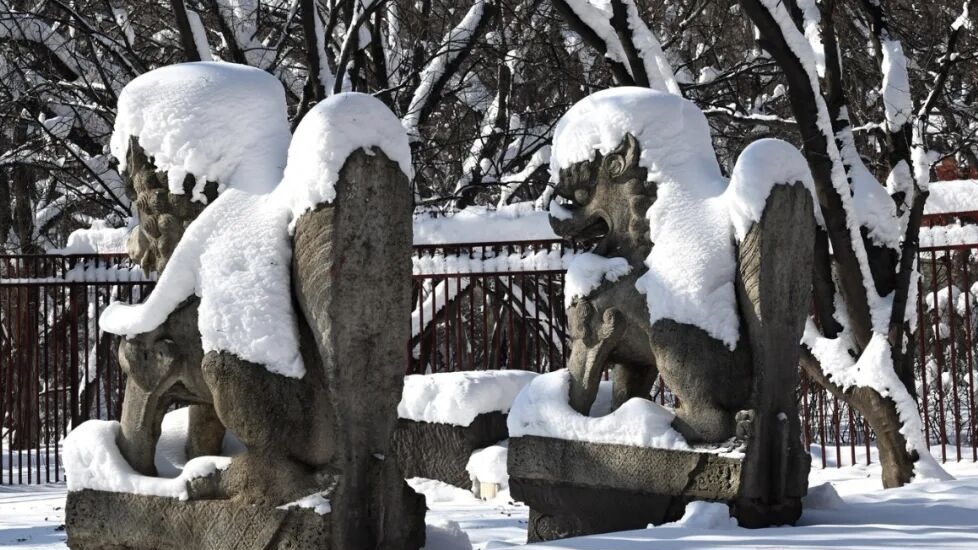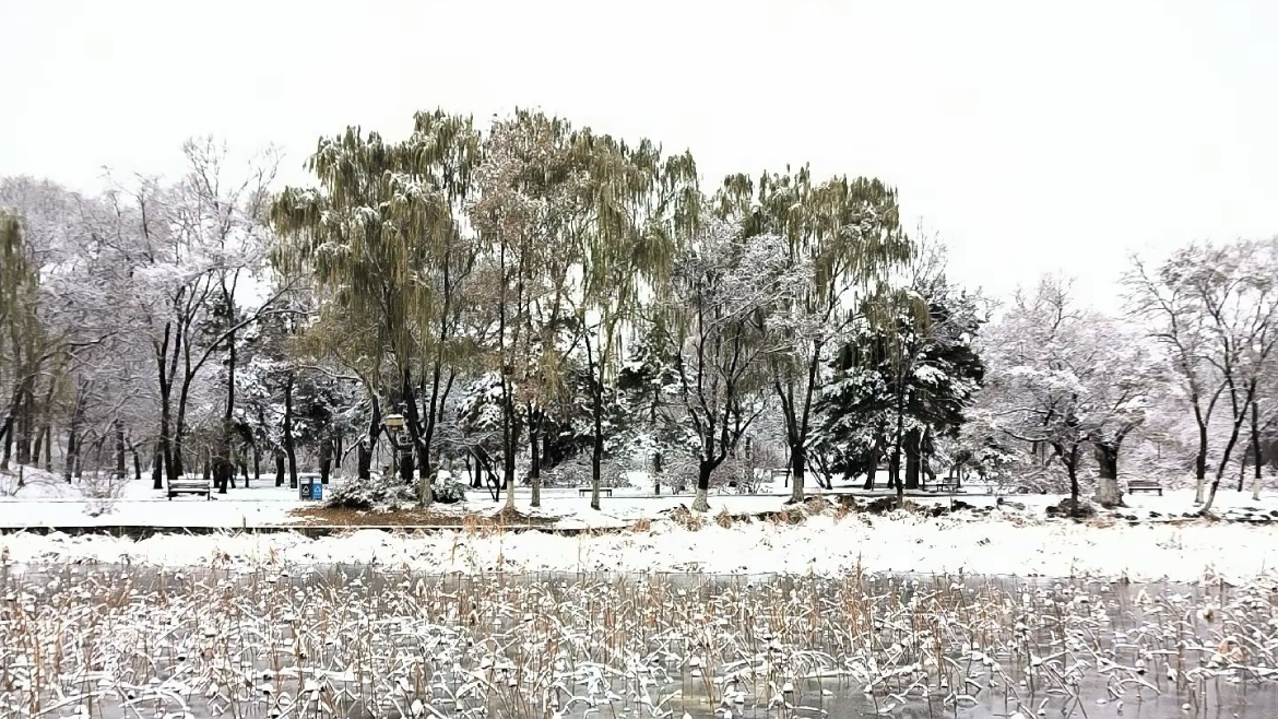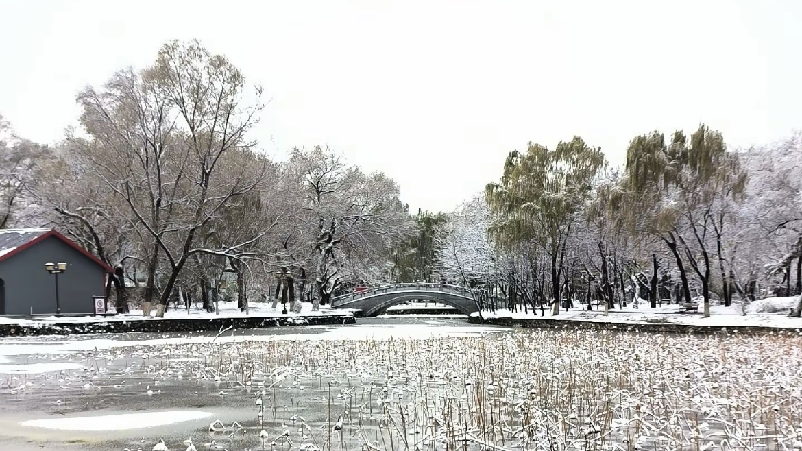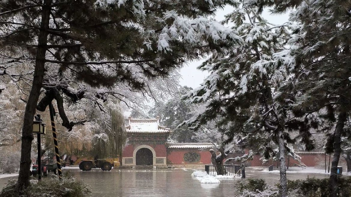 走进北陵,眼前便是一树一树的霜花,十月的初雪,来的突兀,来的爽快,让北陵公园一夜间变成了水墨丹青。披着轻纱的北陵,此刻格外静谧、凝重,仿佛又回到了那久远的年代。