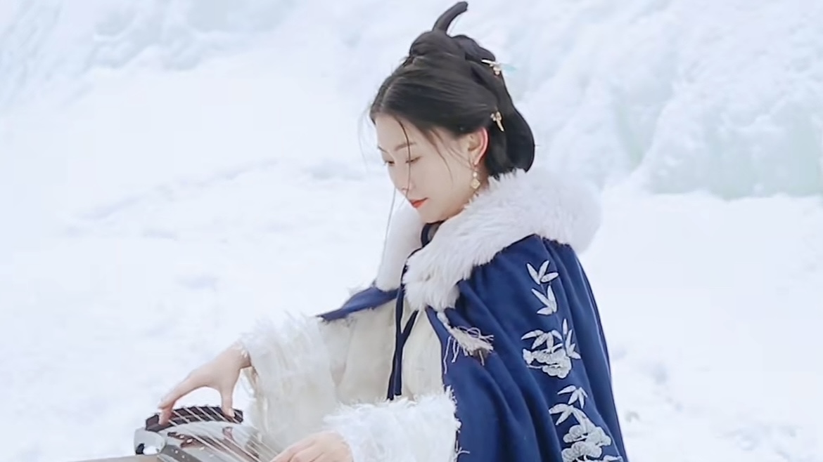厚重的皇陵,邮人踏着白雪去找那个已经旧得长满了锈斑的绿色邮筒。信寄给谁不重要,重要的是见过一幅画,一座凉亭,里里外外均为素白,一位身着纯蓝白汉服的女子,端坐其中石凳上,黑发高绾,面如凝脂,正低眉抚琴。琴音在纤纤玉指间婉转轻扬,音域悠长。