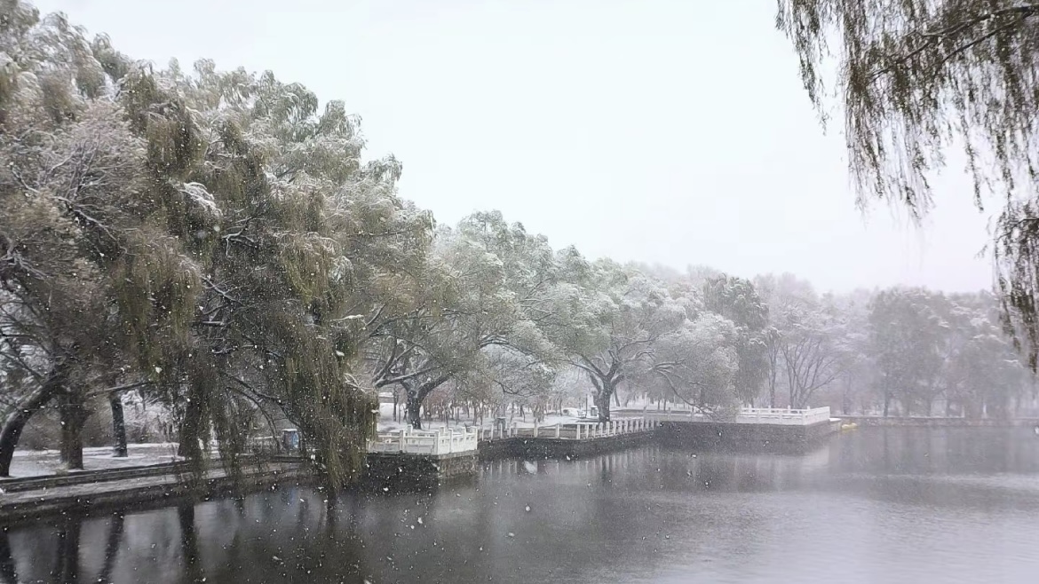 这初雪的覆盖,是一种温柔的、怜惜的素侵,它不似严冬的暴雪那般霸道、酷烈,它只是静静地、耐心地,将一切棱角与丑陋都圆融了,将一切色彩与纷杂都归一了。远处的方城与隆恩门失了轮廓,只剩下一个融融的、安睡的剪影。近处的河道,水尚未冻,墨黑的水面上,接受着这白色的花朵,转瞬便融了进去,只漾开一圈极淡的、如梦似的涟漪。天地间仿佛只剩下两种颜色:白,与衬着那白的、更深的灰。然而这白,又是何等丰富的白!是差堪整个身心都洇染的白,是一掬纯净意中,氤氲开来,纯粹得仿佛绝了尘世的烟火的白,更是那一种灵动而飘逸,邀请遥远而温馨记忆的白。