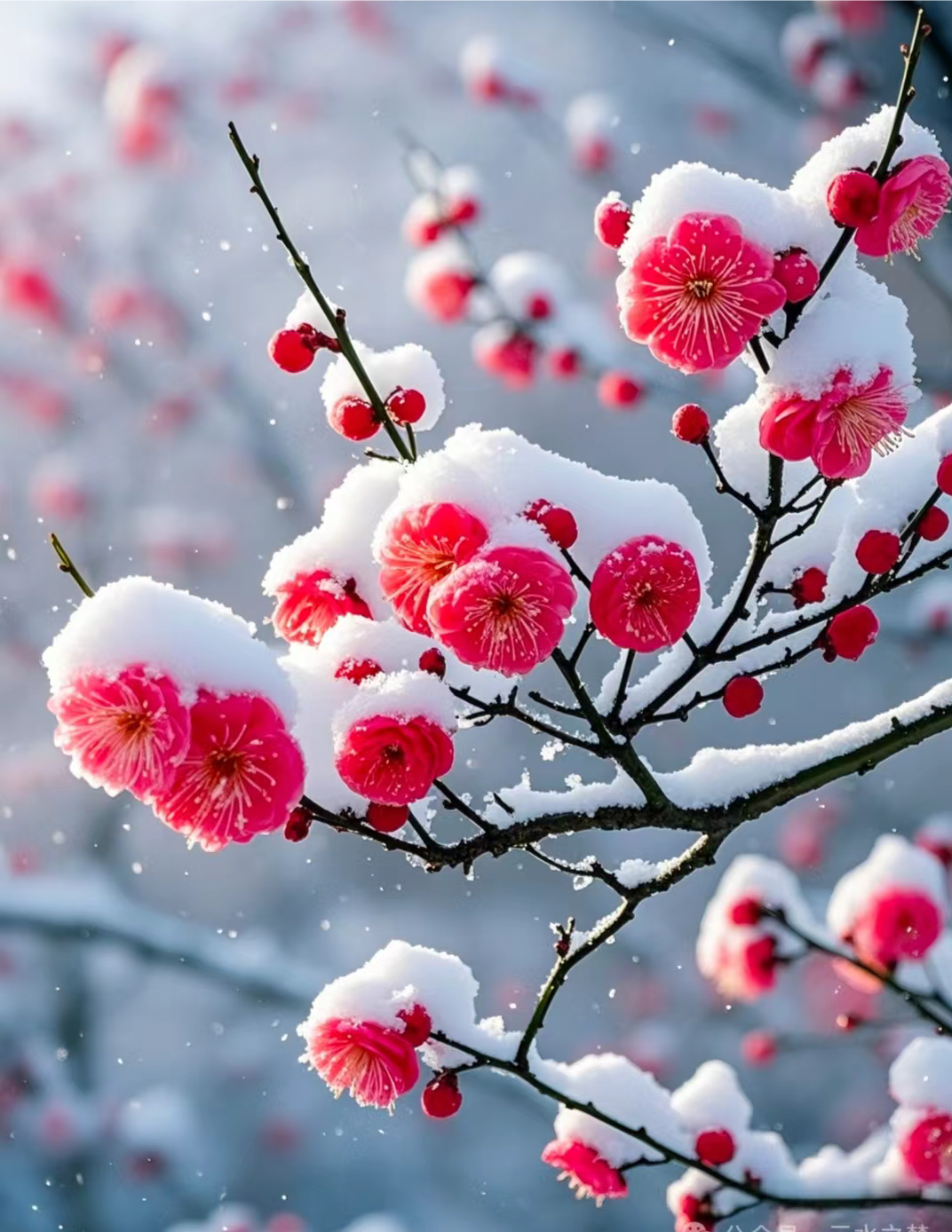【编者按】《梅雪之恋》以冬日的风、雪、梅为画卷,赋予自然景物深切的情感与灵性。诗中“雪”铺展为素笺,“梅”凝作赤影,二者在寂静长夜相拥低语,既似爱情盟约,又似灵魂对话。作者借风雪之寒冽反衬梅雪相依的温热,以天地皓白烘托赤诚之恋,意境清远而深情绵长,在传统意象中寄寓了穿越时空的永恒之约。不错的一首诗,推荐共赏。冬祺笔丰,遥祝好!【编辑:蓝儿】【推荐号:202601142750】