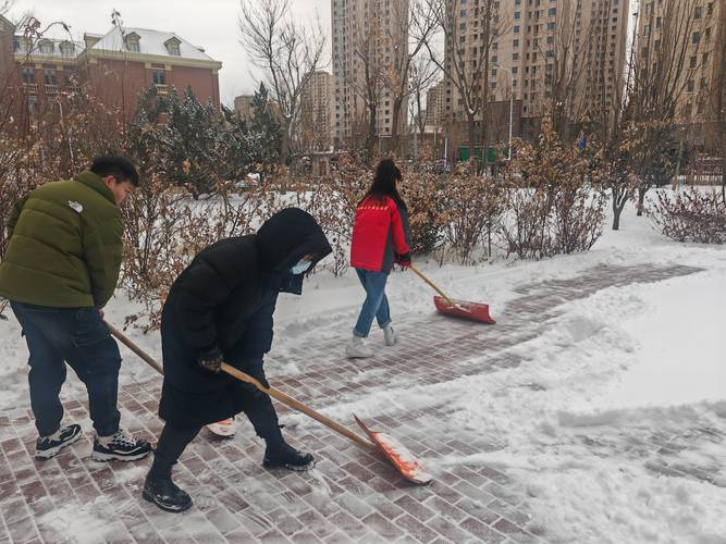 “各人自扫门前雪,莫管他人瓦上霜。”学校通知老师们到学校门前扫雪。