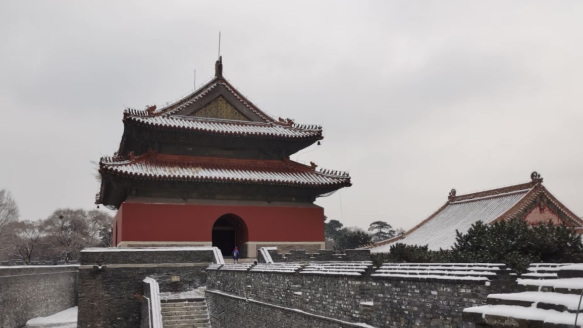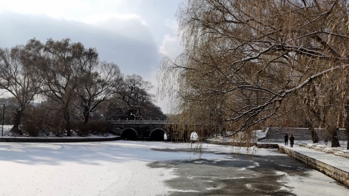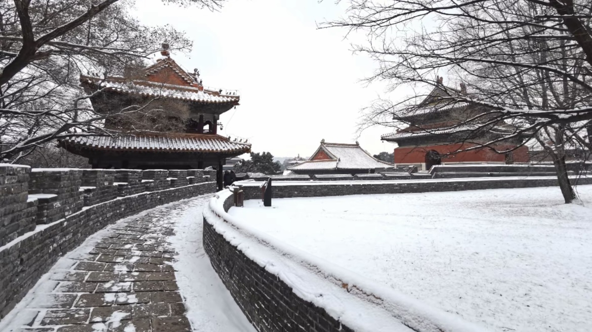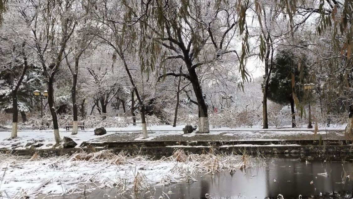 走进北陵,眼前便是一树一树的霜花,十月的初雪,来的突兀,来的爽快,让北陵公园一夜间变成了水墨丹青。披着轻纱的北陵,此刻格外静谧、凝重,仿佛又回到了那久远的年代。