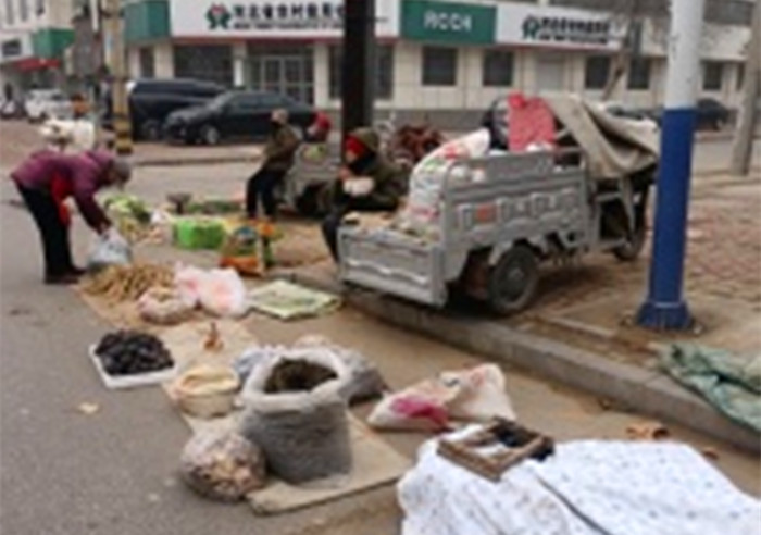 这处便民小市场,是县政府规划方便周边居民,特意开的一条街,让农民们能来卖自家种的农产品。上午和下午人还多些,到了中午,大多摊贩都收拾着回家了,只剩些路途远、装卸不方便的,还在这儿圪蹴着,守着摊子熬到天黑才肯回,第二天又早早来接着卖。我瞧着,守在这儿的大多是六七十岁的老人,他们摊位上摆的,都是自己秋收的成果,带着泥土气的白菜、胖乎乎的胡萝卜、白净的白萝卜、圆滚滚的蔓菁疙瘩,还有裹着泥的山药,每样都新鲜实在。到了晚上,卖豆腐、馒头的也陆续赶来,街道一下子就热闹起来了。